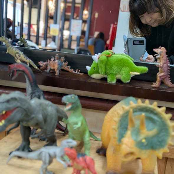 ママが準備してきてくれた彼が大好きな恐竜たち、。
